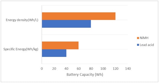 In comparison with lead-acid batteries, a Ni-MH battery has up to double the specific energy and a greater energy density, as shown in Figure 3. However, Ni-MH batteries do have disadvantages, such as having lower charging efficiencies than other batteries, and a higher self-discharge that is exacerbated in a high-temperature environment. The application of Ni-MH batteries in EVs has become stagnant in recent years because of the patent encumbrance of Ni-MH batteries for heavy-duty vehicles [47]. The patent encumbrance of Ni-MH batteries for heavy-duty vehicles refers to the obstacles of commercialization of Ni-MH battery technology arising from the patent system that is designed protect business benefits. The reasons for the obstacle may relate to the potential importance of Ni-MH battery technology for EVs. Others think that it is the result of the inability of the technology to compete with other batteries, such as lithium batteries [46].
