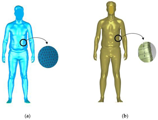 (a) Polygon model and (b) NURBS (Non-uniform rational B-splines) model of a test person.