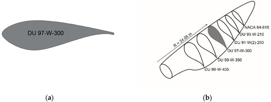(a) DU 97W300 airfoil; (b) sketch of blade airfoil distribution on NREL 5 MW blade.