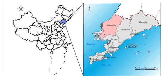The geographical location of the study area is shown in Figure 1. Wafangdian city is located in the west side of the central part of the Liaodong Peninsula (between 39°20′~40°07′ north latitude and 21°13′~122°17′ east longitude). As illustrated in Figure 1, it is adjacent to Pulandian City in the east, neighbors Bohai Sea in the west, faces the Jinzhou District across the sea, and closes Gaizhou City in the north. This region is dominated by mountains and hills, instead of plains and lowland; moreover, its terrain is high in the northeast and low in the southwest. The territory is located in the temperate continental monsoon climate zone in the eastern Asian of the middle latitudes of the Northern Hemisphere. At the end of 2017, the total registered population of this region was 998, 000 with a natural growth rate of 1.60%, birth rate of 8.89%, and mortality rate of 7.29%. The rapid economic development and population growth have brought a huge pressure on local energy provision. The energy requirement of Wafangdian City was satisfied by the aid of imports due to its limited primary energy. Currently, the shortage in fresh water, territory, and electricity have already become the main bottleneck of economic development. Four types of power generations were used to provide the electricity: (i) Wind power: Total installed capacity of seven wind farms reached 360–500 MW approximately and the annual power generation is 36.02 GWh; (ii) Hydropower: Total capacity provided by the Dongfeng Reservoir and Songshu Reservoir during the flood season is 640 kW; (iii) Thermoelectricity: Three power generation units involved in the Wafangdian Thermal Power Plant were characterized by a total installed capacity of 39.6 MW, annual power generation of 1.847 × 108 kWh, and on-grid power of 1.62 × 108 kWh; (iv) Thermal power: Two generator units with 3 MW were sourced from the Wazhou self-provided power plant and one generator unit with 3 MW was provided by the Washuiyuan self-provided power plant.