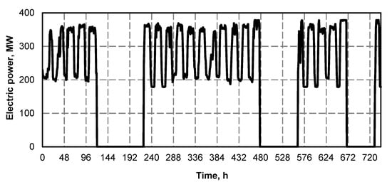 3.3. Power Production Unit Cost for the Quasi-Steady State of 370 MW Power Unit Operation With a Gas Turbine Shut Off During the Period of Night Low Demand (“Night Valley”)
