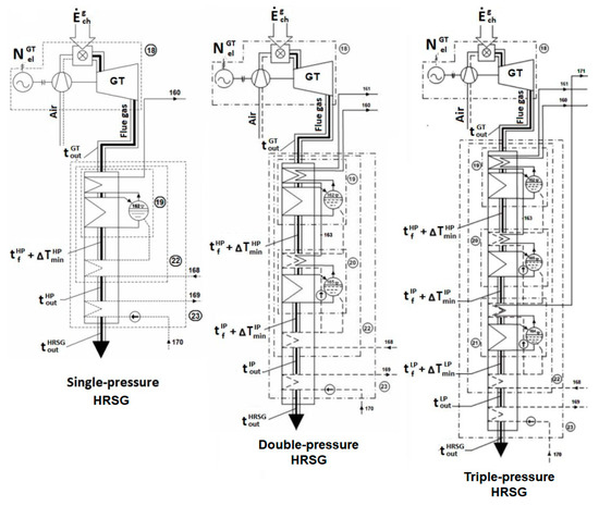 | Parameter | Single- Pressure HRSH | Double- Pressure HRSG | Triple- Pressure HRSG |