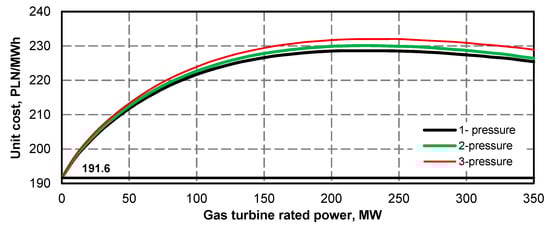 | Unit generation cost (ec = 10.0 PLN/GJ, eg = 27.7 PLN/MWh, (kel)ex = 170 PLN/MWh) | 218 PLN/MWh | 219 PLN/MWh | 222 PLN/MWh |