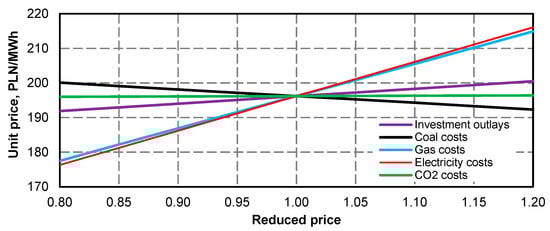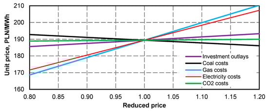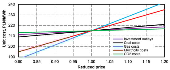| Unit generation cost (ec = 10.0 PLN/GJ, eg = 27.7 PLN/MWh, (kel)ex = 170 PLN/MWh) | 211 PLN/MWh | 213 PLN/MWh | 215 PLN/MWh |