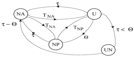 13]. In their works were presented research and an analysis of power supply systems in transport telematics devices (PSSs in TTDs). The presented PPS consisted of a main power supply and a standby one. This enabled describing it with Chapman–Kolmogorov equations. The solutions lead to obtaining dependencies determining the probabilities of the PSS in TTD of staying in their functional states (full ability, partial ability, unreliability) in symbolic terms. The consecutive analysis determined the dependence between probability of PSS in TTD staying in full ability state RO and time restoring this state.