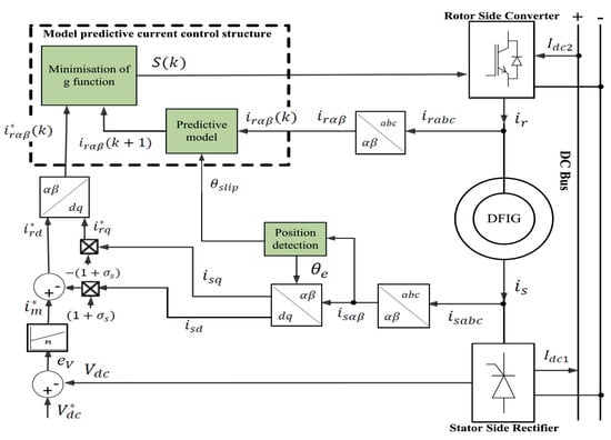 Block diagram of the sensorless MPC scheme with its current control structure of a DFIG system [57].