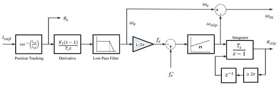 As seen in Figure 5, a PI controller eliminates the error among actual and reference frequency ( Hz), and the output of the PI controller gives the slip angular speed , while a discrete-time integrator is used to obtain the slip angular position finally.