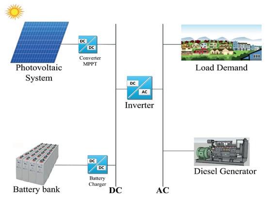 Currently, there has been a change in the way power systems are understood, due to the penetration of distributed generation that allows connecting smaller generators to low voltage networks (usually less than 1 kV) [1]. If the branches with distributed energy resources also contain loads, and in some cases, energy storage systems, the possibility of operating independently from the main grid can be considered. For instance, in the case of power shortages in the main grid, the branch with distributed generators, loads, and distributed energy storage systems can work isolated from the main grid. This microgrid needs to operate in a controlled and coordinated way, either grid-connected or in isolated mode [2]. In this context, it is possible to find three types of microgrids topologies, namely alternating-current (AC), direct-current (DC), and hybrid [3,4].