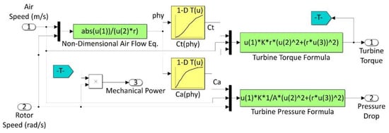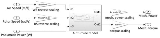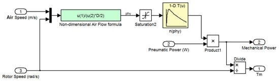 Simulink model of air turbine using efficiency vs. flow coefficient characteristic.