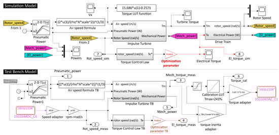 Except for the first stage of the primary PTO (OWC model), all the other parts of the systems were modeled with Simulink using LUTs and mathematical equations in order to evaluate the same variables which can be measured by the HIL bench.