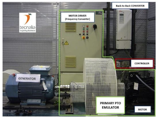 Figure 2 shows the HIL used for this work. The test bench is composed by two sections: the first one is that of the emulated parts (primary PTO in this case), the second one contains the embedded real components, in particular the generator, the AC/AC power converter and the controller.