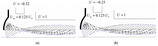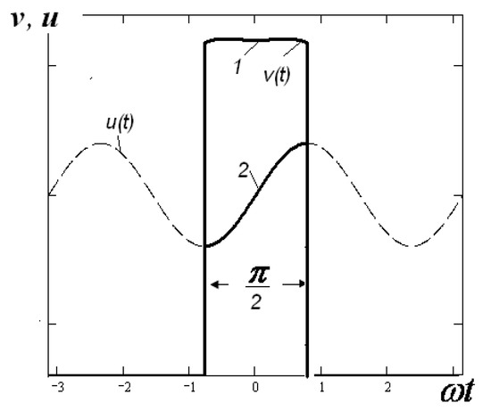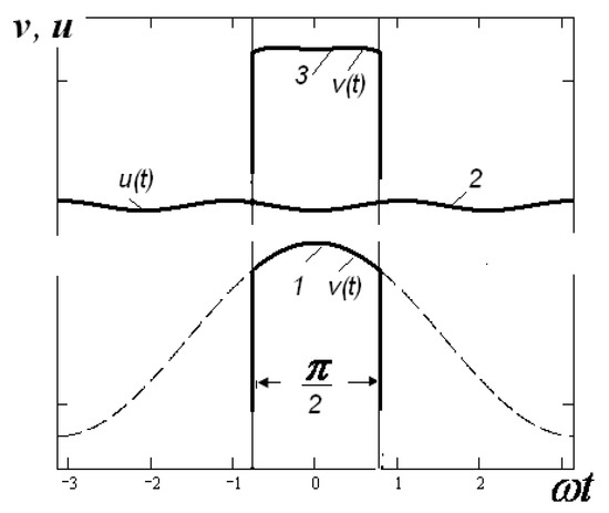 In a resotrode with 2π-regeneration, the width of the bunch during its formation and at the entrance to the regenerating gap will differ due to additional bunching. The result of this bunching can be estimated based on the results obtained for klystrons. Under the condition that the width of the bunch, in accordance with Equation (12) and Figure 14, becomes smaller (i.e., the bunch, according to the terminology used for klystrons, becomes fully saturated (FS)). Further bunching of the FS-bunch is primarily related to the transformation of its velocity function. It is necessary to acquire the bunch that comes together and ensures the most effective braking in the exit gap. In this case, the output cavity itself must be detuned to the left. In the klystron, the necessary transformation of the velocity function is performed in the gap of last cavity of buncher, which is located close enough to the output gap. However, the bunch comes into this gap close to the monospeed. In a resotrode with 2π-regeneration, the original velocity function has a different form: the center of the bunch has a maximum velocity that falls to the edges (Figure 20). Further transformation of such a bunch in the drift without additional impact would lead to additional bunching of the front part of the bunch and to the unbunching and lagging of its rear part (i.e., to the formation of a kind of “comet”).