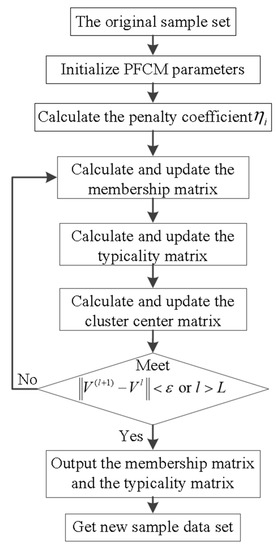 Step 6 If or L < l, output the cluster center, the membership matrix and the typicality matrix; if not, make l = l + 1, skip to Step 2. The flow chart of the PFCM algorithm is shown in Figure 1.