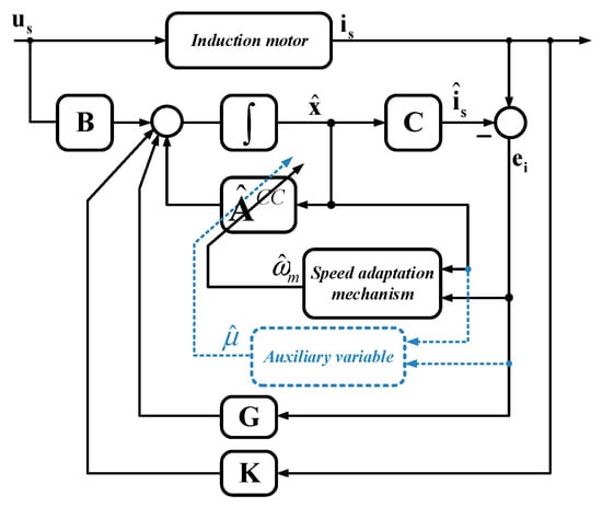 - Hinkkanen, M.; Luomi, J. Novel full-order flux observer structure for speed sensorless induction motors. In Proceedings of the IECON’01. 27th Annual Conference of the IEEE Industrial Electronics Society (Cat. No.37243), Denver, CO, USA, 29 November–2 December 2001; Volume 2, pp. 1333–1338. [Google Scholar] [CrossRef]