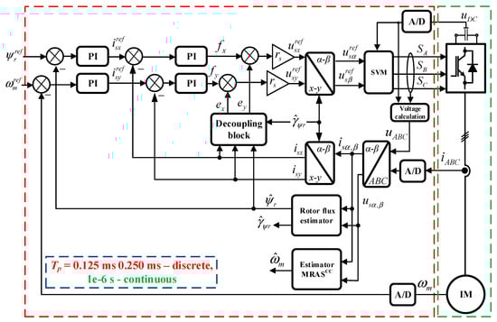 - Korzonek, M.; Orlowska-Kowalska, T. Discrete implementation of sensorless IM drive with MRAS-type speed estimator. In Proceedings of the Int. Conf. Electrical Drives and Power Electronics (EDPE), The High Tatras, Slovakia, 24–26 September 2019; pp. 242–247. [Google Scholar] [CrossRef]