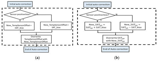 Figure 3a illustrates the auto-correction workflow for the first method. It is assumed that when the FDD algorithm flags the sensor bias fault it also determines the bias value, which is the difference between the sensor reading value and the actual value. This bias value (SAT_bias) is fed into the auto-correction algorithm. After judging the bias direction, the bias value is directly written to the TempSensorOffset. The adjusted TempSensorOffset is added from the SAT reading value and the conversion results (SAT+TempSensorOffset) enter the controller as input (e.g., adjust the incorrect SAT value with a new offset to provide the correct reading which is fed into the cooling/heating coil valve controller).