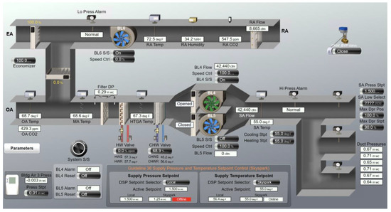 Figure 5 shows the BAS graphics (i.e., native dashboard) for one of the two AHUs.