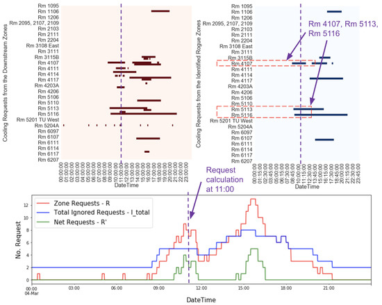 Section 2.5 and overwrites the number of ignored cooling requests from the identified rogue zones. The number of requests and ignored requests are calculated as in Equations (3)–(5):