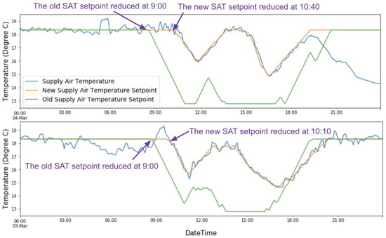 Figure 7, the SAT setpoint changes followed the routine described in
