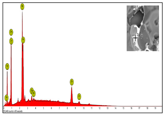 EDS spectroscopic analysis of the +1 position of the ZnO varistor B2 sample.
