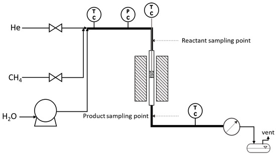 The MCO2 and the SMR experiments were performed in two different laboratory scale fixed-bed catalytic tubular reactors [26], respectively. The geometry was the same in both cases (Figure 1), whereas the dimensions of the two reactors were different (main data in Table 1).