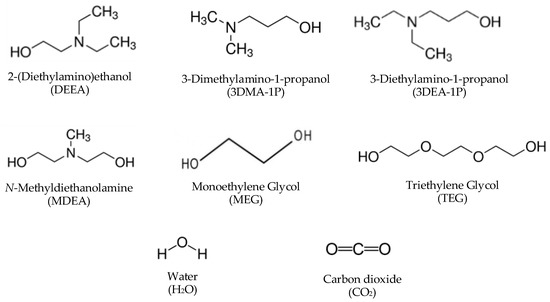 - Kohl, A.L.; Nielsen, R.B. Chapter 2—Alkanolamines for Hydrogen Sulfide and Carbon Dioxide Removal. In Gas Purification, 5th ed.; Gulf Professional Publishing: Houston, TX, USA, 1997; pp. 40–186. [Google Scholar]