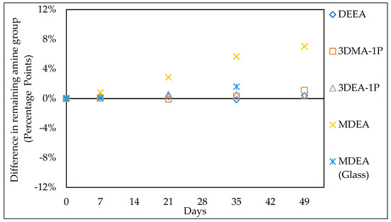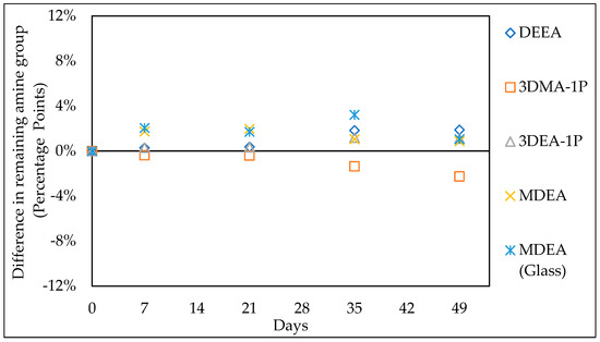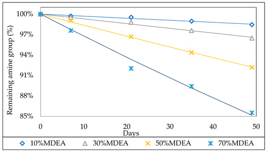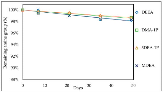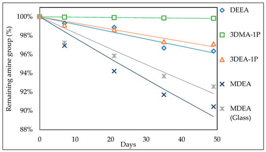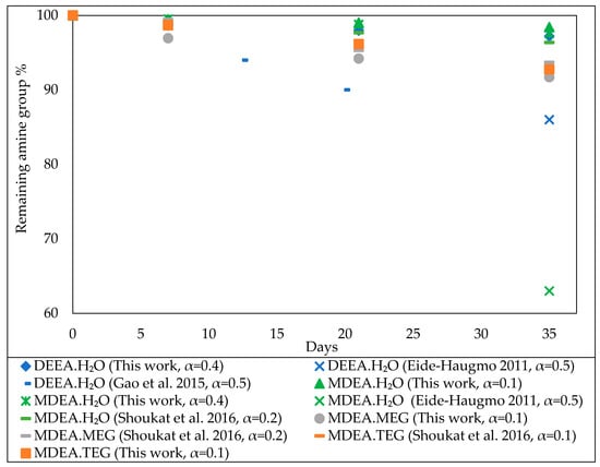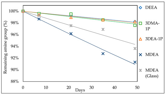 - Shoukat, U.; Baumeister, E.; Pinto, D.D.; Knuutila, H.K. Thermal stability and corrosion of tertiary amines in aqueous amine and amine-glycol-water solutions for combined acid gas and water removal. J. Nat. Gas Sci. Eng. 2019, 62, 26–37. [Google Scholar] [CrossRef]