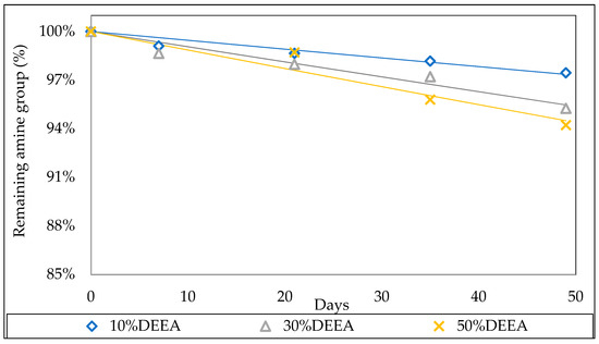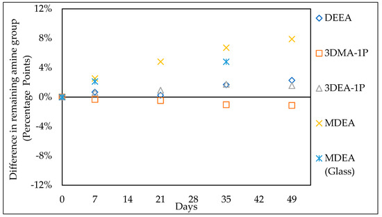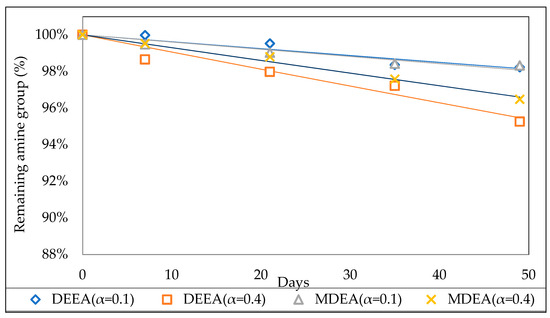 | Name | CO2 Loading (α) | Remaining Amine Group Concentration (mole/L) after Time (days) | ||||