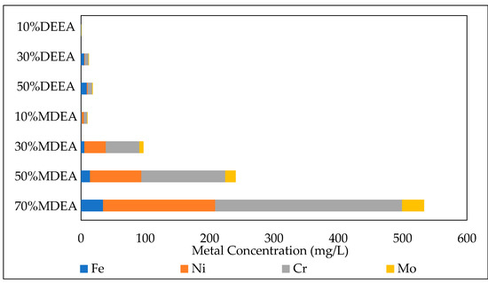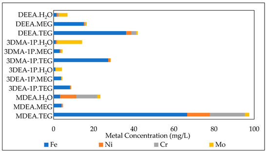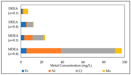 | Name | Unloaded Amine Weight (%) | CO2 Loading (α) | Fe (mg/L) | Ni (mg/L) | Cr (mg/L) | Mo (mg/L) |