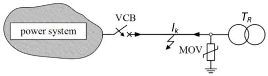 The general single line diagram of a system used in the simulation is shown in Figure 1. This system consists of a variable length cable line Lk, distribution transformer (Table 1) Tr, vacuum circuit breaker (VCB), and the MOV. The overall analysis is focused on the measurements in phase A of the medium voltage side of the transformer.