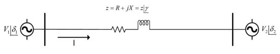 In this section, the provision of voltage regulation through the DC nanogrid will be discussed. Figure 7 illustrates two AC buses connected through a transmission line with impedance z. The voltage sources that are depicted below can represent either a conventional AC bus of the power grid or the inverter’s output of DC nanogrid. In both cases, the same analysis and the equations below apply.