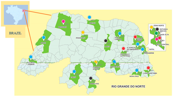- RN Chega A 3,5 Milhões de Habitantes em 2019, diz IBGE | Rio Grande do Norte | G1. Available online: https://g1.globo.com/rn/rio-grande-do-norte/noticia/2019/08/28/rn-chega-a-35-milhoes-de-habitantes-em-2019-diz-ibge.ghtml (accessed on 28 October 2019).