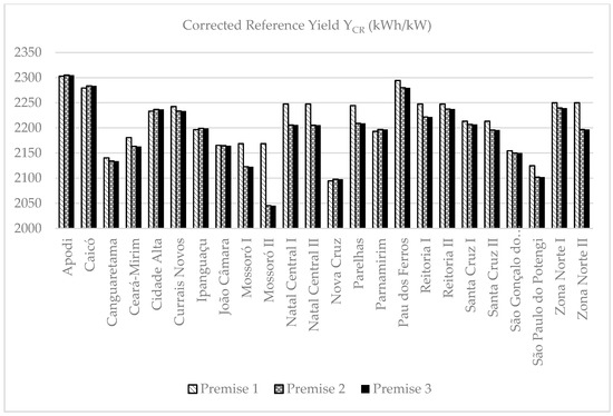 Thus, the Corrected Reference Yield (YCR), Final Yield (YF), Performance Ratio (PR), Capacity Factor (CF) and Annual Global Efficiency (ηA) of the systems were used to infer which locations (IFRN teaching units) are most appropriate for photovoltaic system deployment.