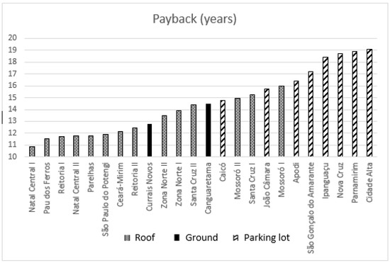 In Brazil, companies that sell photovoltaic systems massively disclose the fact that it is advantageous to invest in individual electric energy production using this technology, mainly due to the constant drop in module prices noted since the 2010s, as well as increased electricity taxes. The main argument used is the Payback time, which usually ranges between 5 and 8 years [46]. This parameter is considered as a rule for residential system investments. Because of this, this study uses the DPB as the main parameter to assess the financial viability of IFRN-Solar Project plants.
