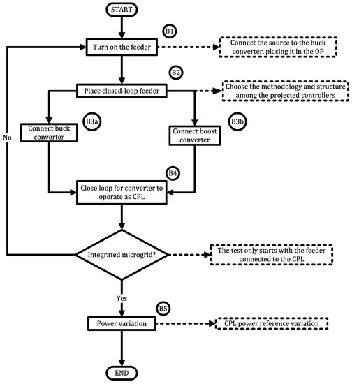 It is observed that the boost converter connected to the feeder as CPL imposed on the system a current consumption higher than that of CPL buck, where in the POL of CPL boost, the minor loop gain is at least twice higher than the POL point of CPL buck, justifying a greater instability observed during the test is in the form of a greater current ripple. In addition, the lower load demand of the CPL boost (occurring to p.u.) has a minor loop gain higher than the greater load demand of the CPL buck, which indicates that the designed CPL boost is a more complex plant due to its non-minimum-phase characteristic and its higher current consumption. Thus, the connection of CPL boost took the feeder to an OP far from the project, although all methodologies are able to guarantee the stability of the system, even for a much higher load level, although it is reflected in a worse performance of the controllers, especially those that uses the current state to carry out the control. Finally, it is observed the buck-boost microgrid presents an increase in the current level consumed by the CPL, resulting in less stability, making it closer to the threshold of the Middlebrook criterion.