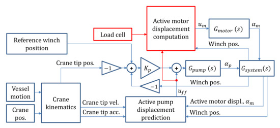 The classic AHC controller works as a VPFM system where the motors’ displacement is only adjusted when the drum layer is changed. The new controller introduced in [9] suggests an active control of the motors’ displacement. The control input is basically a feedforward signal based on the amount of wire on drum, crane’s tip velocity, crane’s tip acceleration, and motors’ displacement.