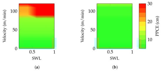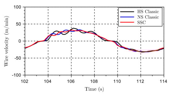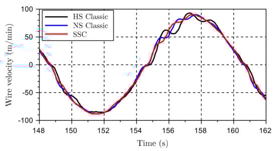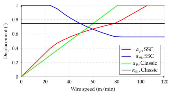 As expected, low-speed settling time characterizes the new controller. It is also seen that the new controller performs better at higher speeds and covers part of the map that the classical controller did not. Additionally, it is seen that in the area where the classical controller is close to the speed limitation of the normal-speed mode, around 80 m/min, the SSC performs better.