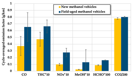 2.7. A Comparison between Field-Aged and New Methanol Vehicles