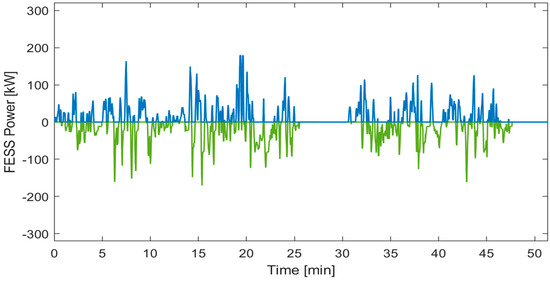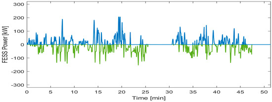 Correspondingly, the FC and FESS power requirements were obtained and reported in Figure 8 and Figure 9; of course, the FESS power was used to compute the FESS SOC oscillations (Figure 7).