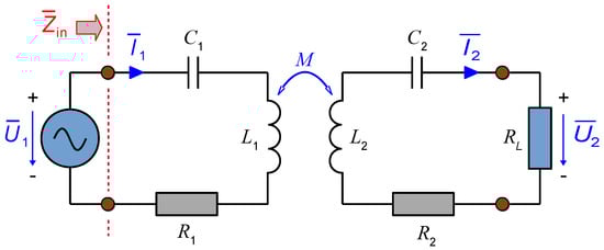 Here, the parameters R1 and R2 represent the equivalent series resistances; L1 and L2 introduce self-inductances; M forms the mutual inductance measured between both coils; and ω is the angular frequency of the supply voltage.
