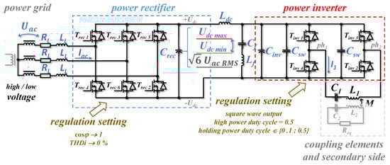 In (14), iac (μ) represents the μ-th harmonic component of the power grid current. Thus, the active input rectifier or the combination of passive rectifier with the power factor correction (PFC) must be used on the system primary side.