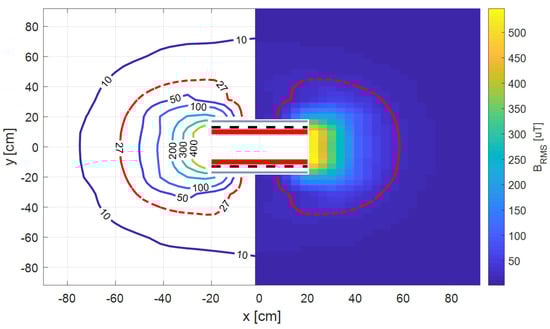 Figure 16) around the coupling coils in the cutting plane with a defined array 180 cm × 180 cm, as defined by ICNIRP 2010 (