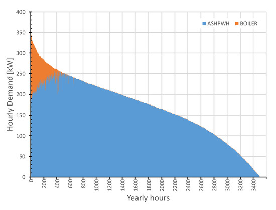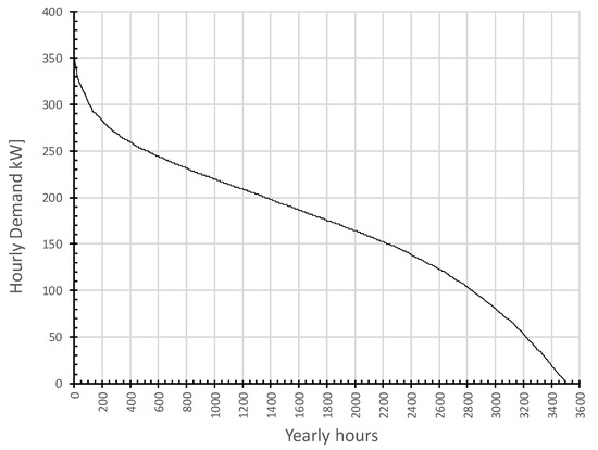 Finally, the hourly demand is sorted from maximum to minimum, obtaining the annual cumulative heating demand profile, as shown in Figure 2.