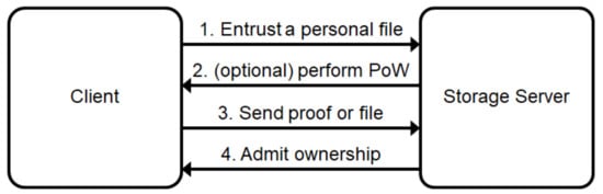 - Halevi, S.; Harnik, D.; Pinkas, B.; Shulman-Peleg, A. Proofs of ownership in remote storage systems. In Proceedings of the 18th ACM Conference on Computer and Communications Security; ACM Press: New York, NY, USA, 2011; pp. 491–500. [Google Scholar]