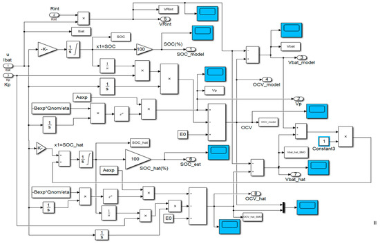 In this section, we are focused on the generic Li-ion Co cell model description in a bidimensional continuous and discrete-time state-space representation. Since “the new technologies heavily depend on battery packs, it is therefore important to develop accurate battery cell models that can conveniently be used with simulators of power systems and on-board power electronic systems”, such is mentioned in [25]. The Li-ion Co battery model adopted in this research paper is a generic MATLAB/Simscape nonlinear model suggested in [25] and depicted in Figure 1.