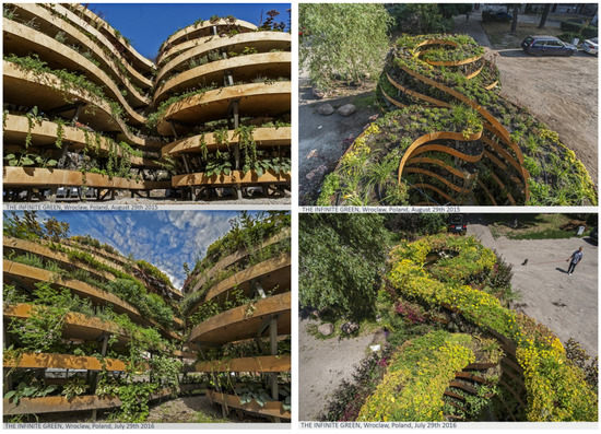 - Pietrzyk, T. Nieskończony Zielony, Czyli Instalacja na Ołbinie. Available online: https://wroclaw.wyborcza.pl/wroclaw/10,88292,18647209,nieskonczony-zielony-czyli-instalacja-na-olbinie.html (accessed on 15 May 2020). (In Polish).
