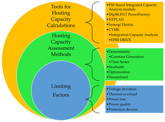 Impact factors, limiting factors and performance index/indices are the terms used to describe the properties of the distribution network that are affected by the integration of DERs. These terms describe the same properties but in various contexts. Impact factors refer to the properties that are affected by the integration of the DERs. For example, integration of Photovoltaics (PV) systems into a distribution network may affect the bus voltages. In this case, bus voltages are an impact factor. Limiting factors and performance indices refer to the properties that limit the integration of DERs into distribution networks based on a defined criterion. For example, if the integration of a PV system into a distribution network is stopped when the bus voltage increases beyond the grid voltage limit, then the overvoltage is a limiting factor for the integration of PV systems. Several studies use a combination of these limiting factors to calculate the HC of a given distribution network. The major limiting factors are as follows: