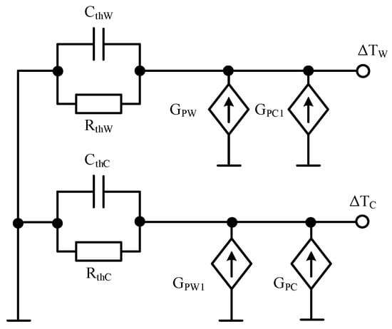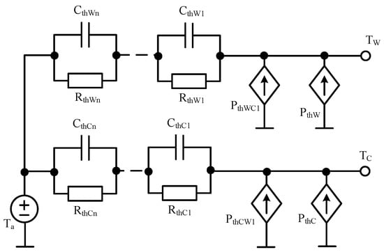 7], changes in the powers dissipated in each component influence only the values of transformer thermal resistances in the thermal model, whereas thermal capacitances do not depend on power. The network representation of the proposed model is presented in
