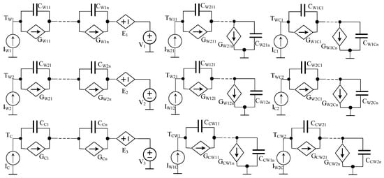 In order to take into account thermal couplings between the core and the windings, controlled current sources PthWC1 and PthCW1 are applied. The voltage source Ta represents ambient temperature. In the described model, common RC networks are used to model self-heating and mutual thermal couplings between the components of the transformer.