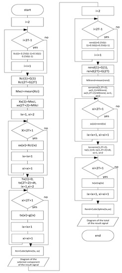 The algorithm for smoothing, extracting the component, as well as the remainder for further decomposition is presented in Figure 5.
